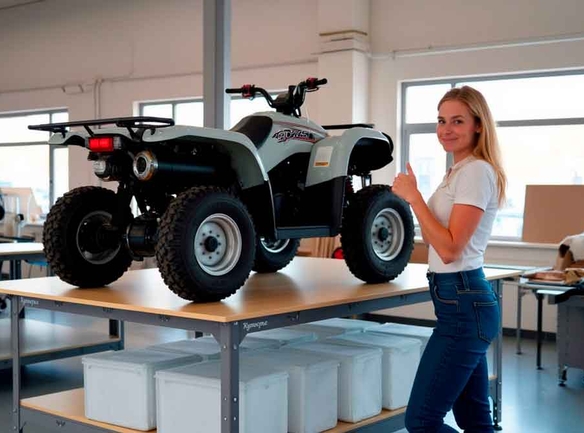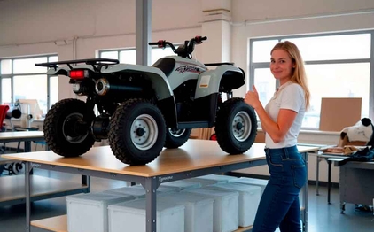Для проверки мы установили на столешницу квадроцикл, а на полки герметичные контейнеры, наполненные водой. Общий вес, который выдерживает каждая секция стола без деформации превысил 600 кг.